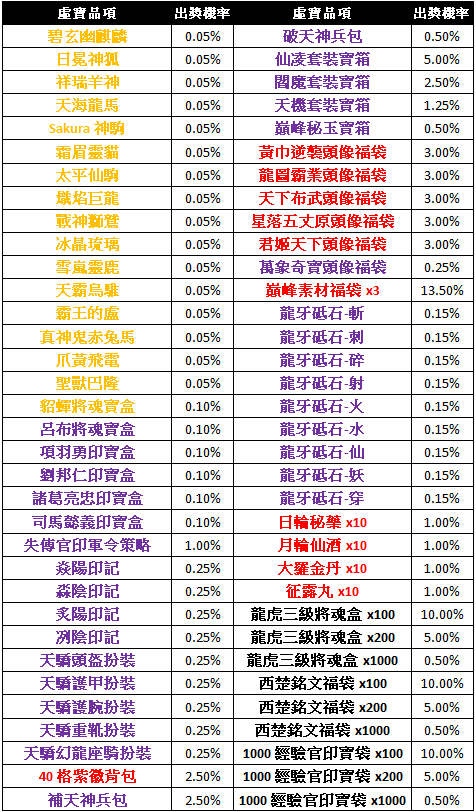 購買「不朽榮光 超值福袋」將有保障1,000~10,000元寶及有機會獲得以下道具。